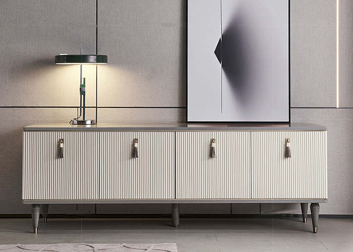 良質の方法は居間のためのステンレス鋼 フレームTVのキャビネットに大理石模様をつけた